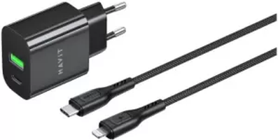 Chargeur secteur Havit ST925 – 1x USB-C + 1x USB-A 60W avec câble Lightning (Noir)